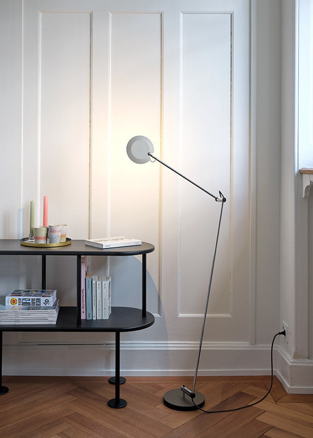 De Pio S is uitgerust met een krachtige, geïntegreerde LED en een verfijnd optisch systeem dat verblinding voorkomt en zorgt voor een comfortabel lichtbeeld. De minimalistische arm en solide voet maken haar discreet maar doeltreffend aanwezig – perfect naast een leesstoel of in een knusse hoek.