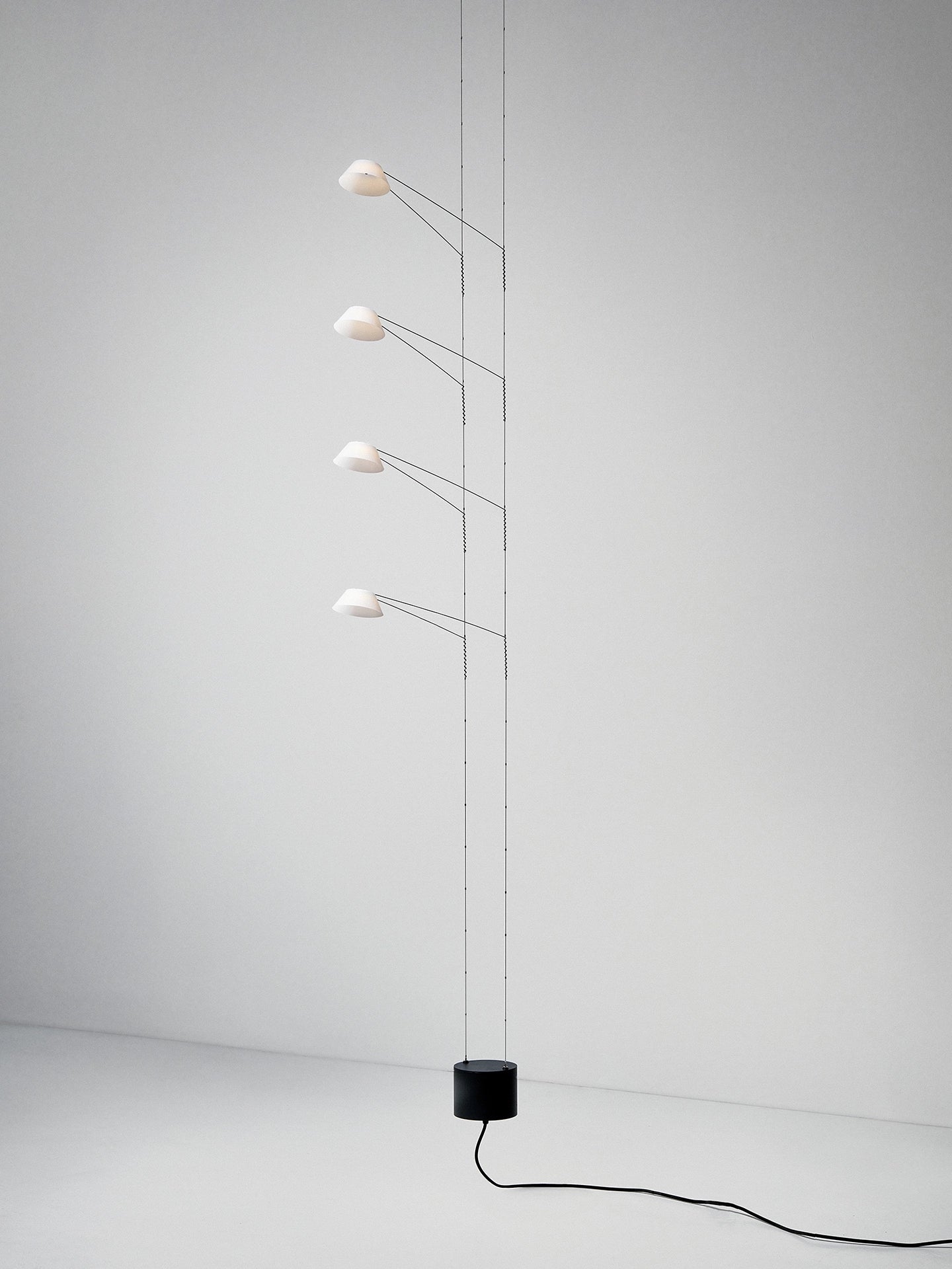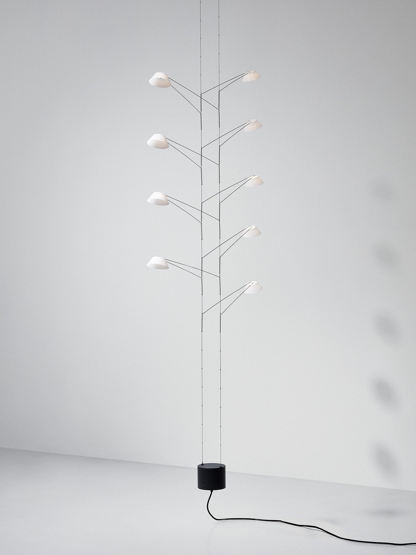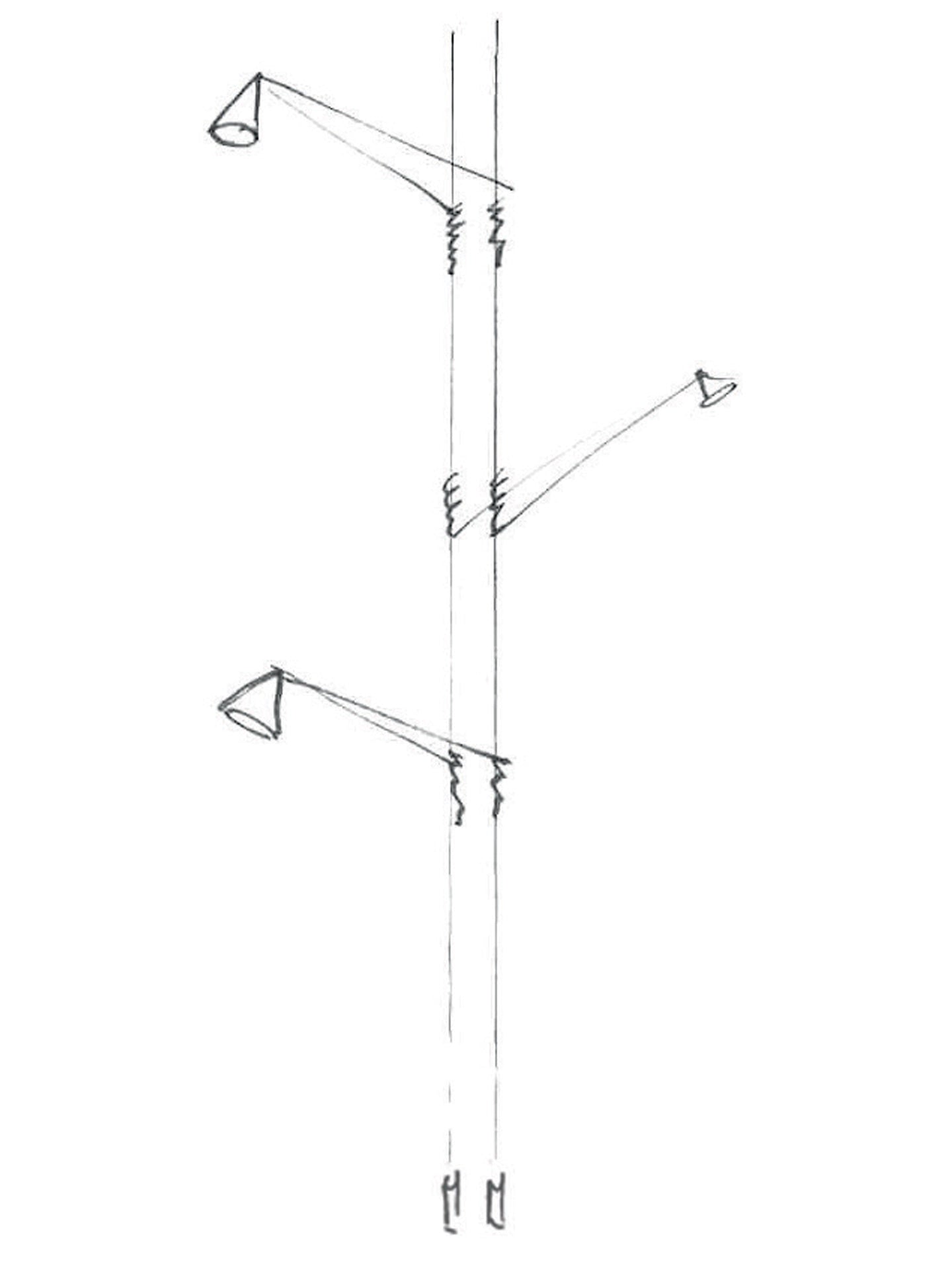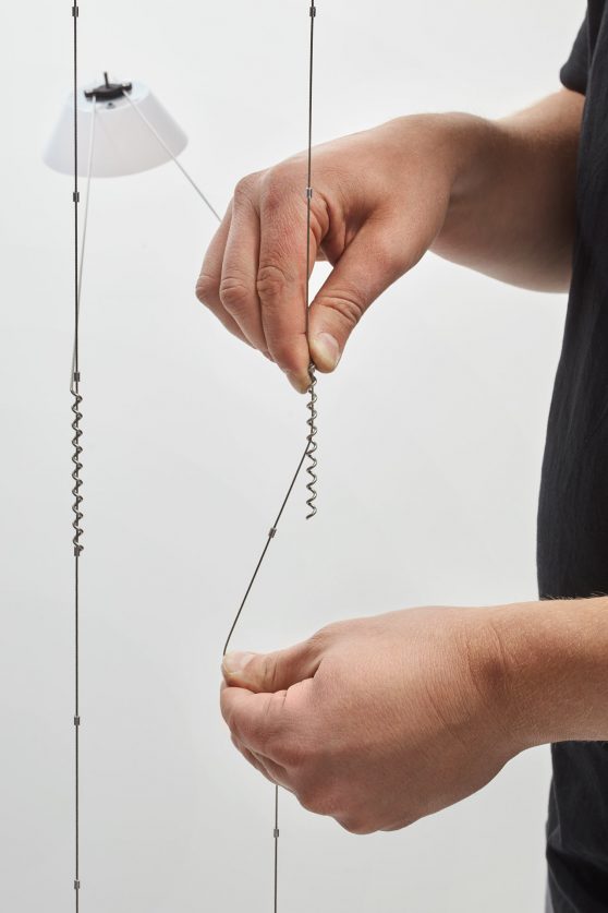 De basisstructuur bestaat uit geëlektrificeerde metalen kabels die aan het plafond zijn bevestigd en door een contragewicht constant onder spanning worden gehouden. De lampbehuizingen zijn op de kabels geplaatst door middel van twee zeer lichte armen die de lichtkop ondersteunen en aan het uiteinde een spiraalvorm hebben.