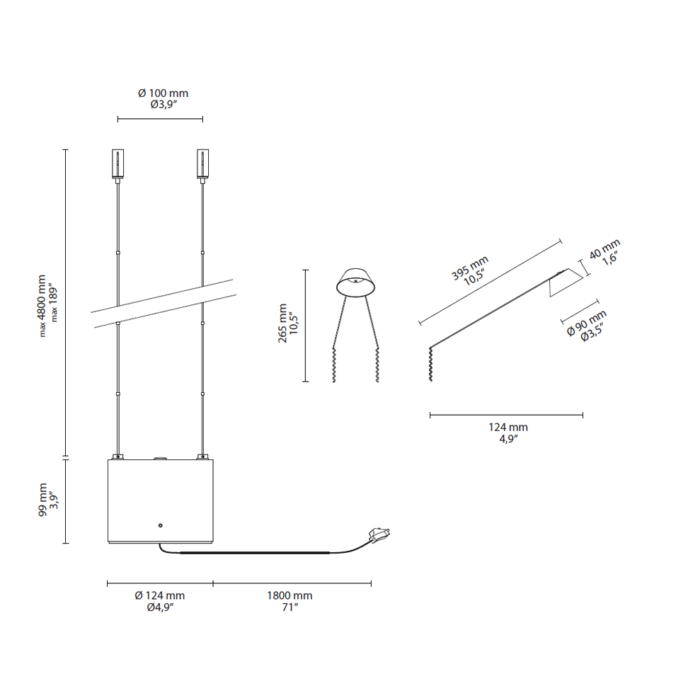 De vloerconfiguratie maakt de installatie van maximaal 10 lampen mogelijk, die in verschillende posities en aan beide zijden kunnen worden bevestigd.