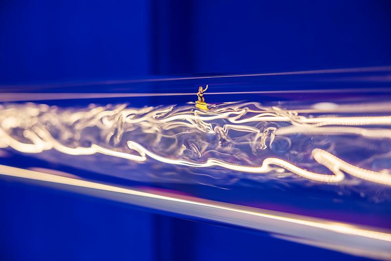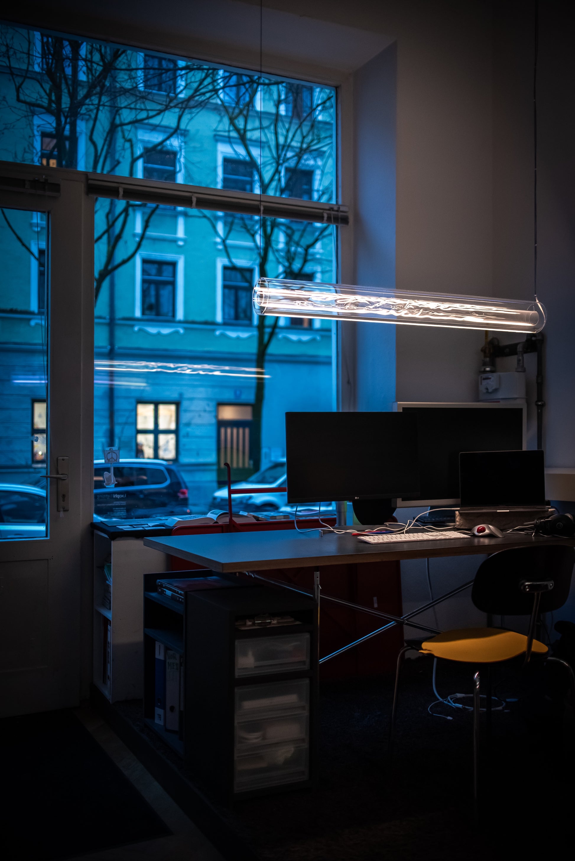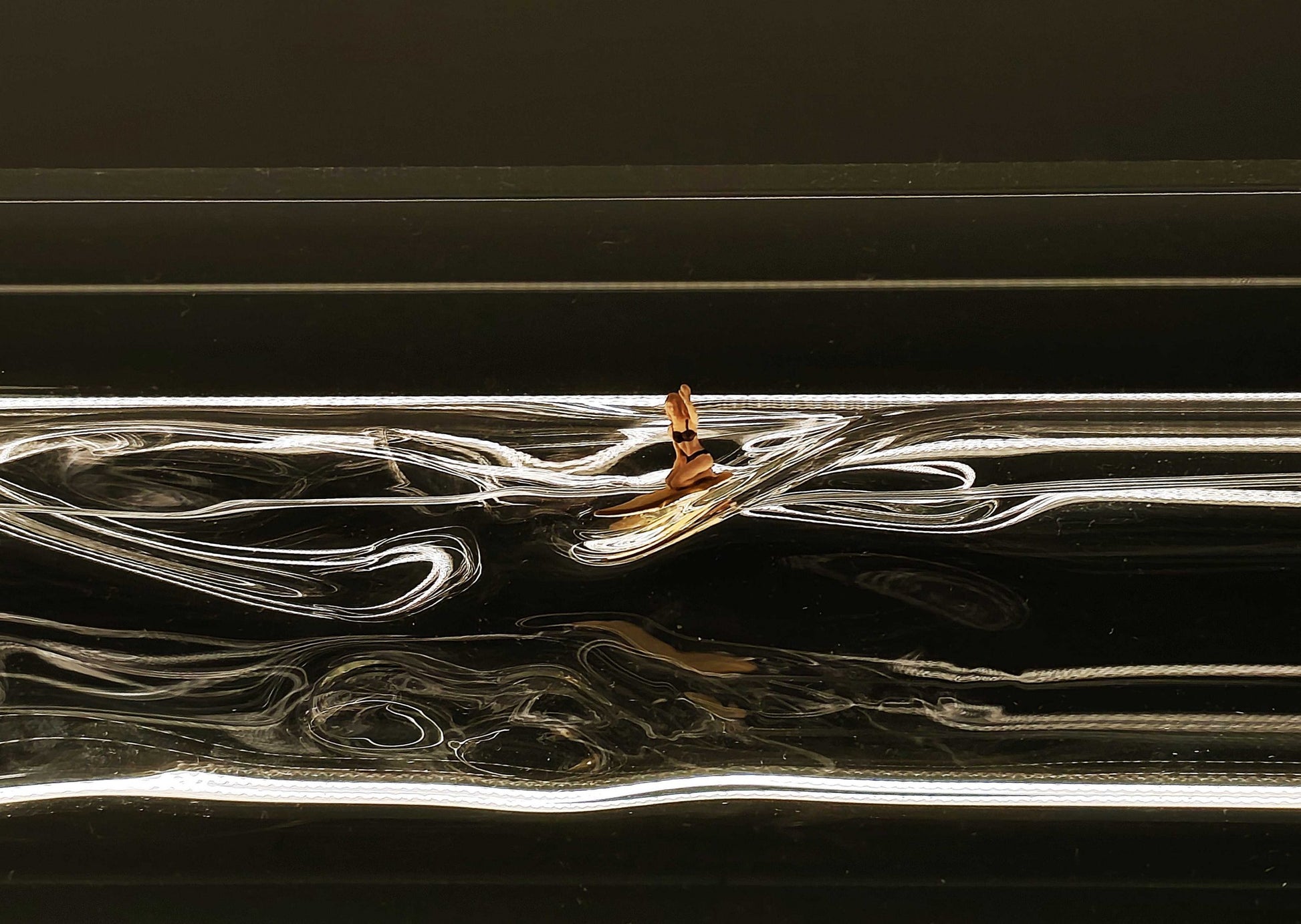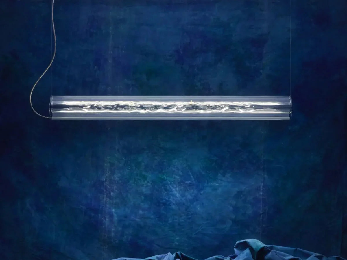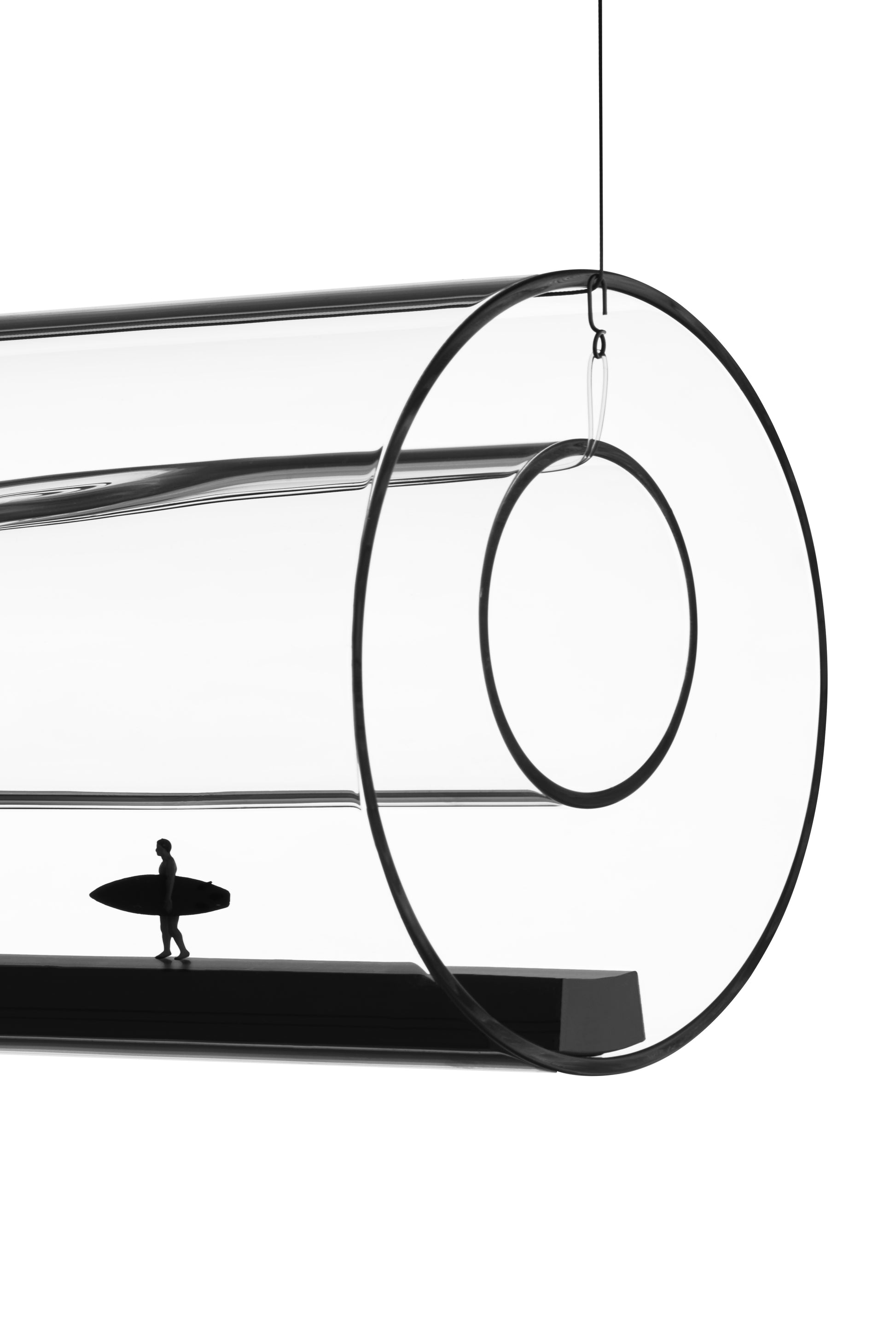 NALUM legt de dynamische beweging van golven en de lichtreflectie op het wateroppervlak vast in een buitengewoon lichtobject. Het middelpunt is een zwevende, golfvormige glazen buis, die fascinerende lichtlijnen creëert door meerdere reflecties. De buitenste, lineair gevormde glazen buis herbergt de lichtbron, die met magneten is bevestigd en zowel opwaarts als neerwaarts gericht licht biedt. Beide lichtbronnen zijn onafhankelijk van elkaar dimbaar, waardoor individuele lichtstemmingen kunnen worden gecreëerd. Nalum nodigt uit tot experimenteren met licht en schaduw: de handgemaakte binnenste glazen buis kan worden bewogen, waardoor steeds nieuwe lichtformaties ontstaan. Als speels detail kunnen de bevestigde figuren van een surfer vrij op de golven van de binnenste glazen buis worden geplaatst. De delicate touwophanging, die in de lengte door de lamp loopt, versterkt het zwevende gevoel van het licht en maakt een precieze lichtrichting mogelijk. NALUM is met name geschikt voor langwerpige tafels, zoals eetkamer- of vergadertafels, en voor representatieve ruimtes waar gerichte en sfeervolle verlichting vereist is.